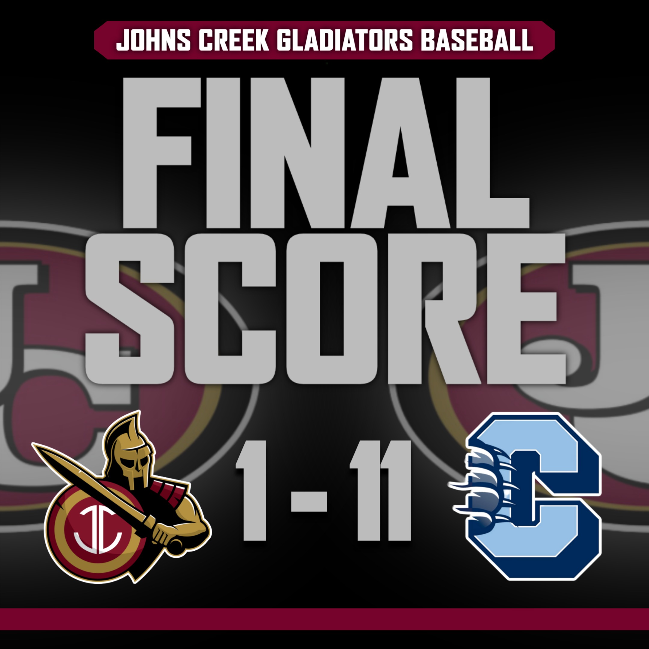 The Bears surged ahead early, capitalizing on timely hitting and aggressive baserunning to build a lead the Gladiators could not match. Johns Creek starter Jesse Johns worked three innings on the mound, battling through Cambridge’s lineup before handing the ball to relievers Rhys Williams and Jake Blackwelder, who finished the game.
