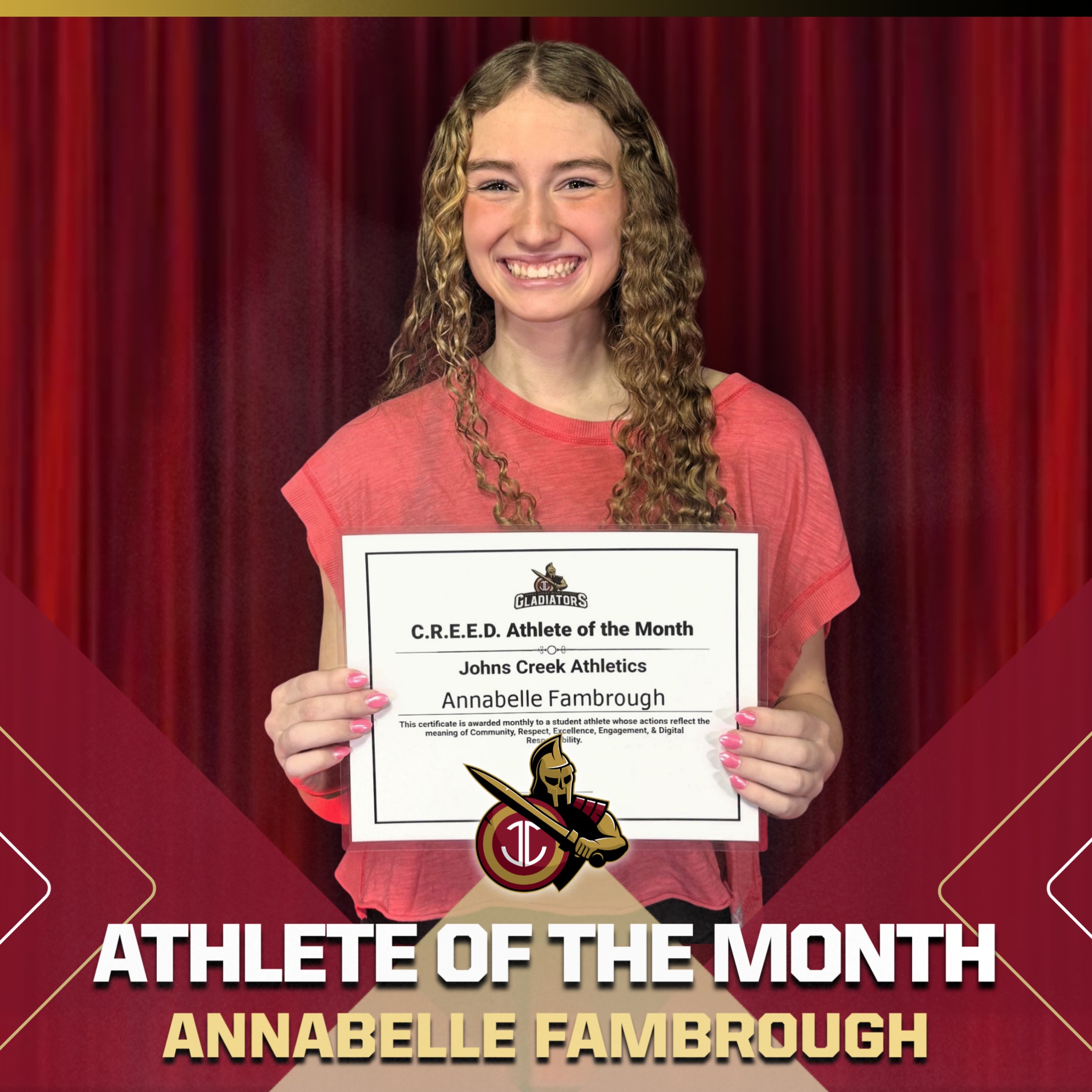 Congratulations, Annabelle! Gladiator Nation is proud to celebrate you.